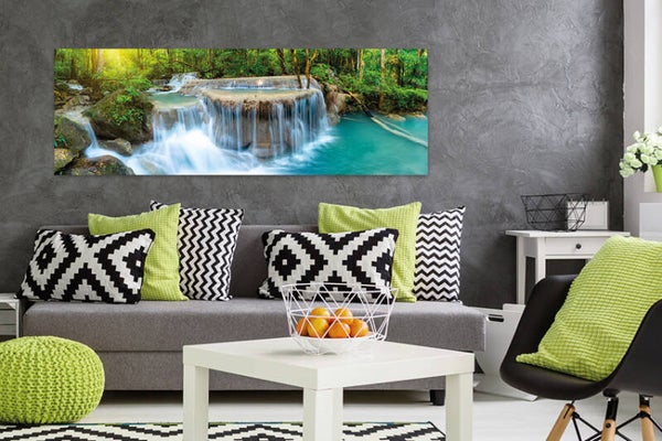 Schitterend panoramische natuur poster van een prachtig bos met waterval in Thailand.