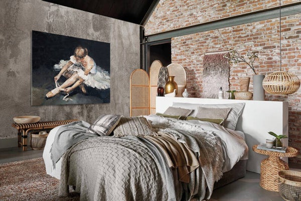 Prachtige kunst poster van een jonge ballerina in witte jurk zittend op de vloer tegen een zwarte achtergrond. Het origineel is geschilderd in olieverf op doek.